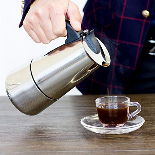Einfach zu reinigen – Der Moka-Topf besteht die Gesamtheit Edelstahl-Spiegeloberfläche, es ist leicht zu reinigen. Unser italienischer Espressomascher kann mit einem Abwaschmaschine qua hervorragender Korrosion und Rostbeständigkeit gereinigt werden.