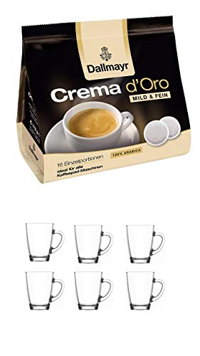 Dallmayr Kaffee Crema d’oro mild und fein Kaffeepads,+ 6 Gläser mit Henkel 300ml …