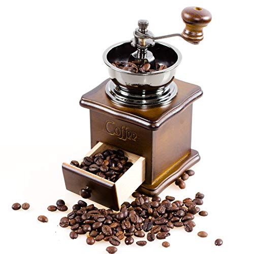 Diese voll funktionsfähige Old World Mühle mahlt Kaffeebohnen für frischen, selbstgebrauten Espresso & Java; es mahlt Aka Gewürze, Nüsse und Kräuter. Nehmen Sie diese einzigartige Kaffeemühle für ein authentisch altes Kaffee-Erlebnis. Das Vintage-Design ist eine tolle Addendum für Ihre Küche. Besteht aus schönem Kiefernholz, Eisen und Keramikkern, ist es sowohl langlebig als Aka ein stilvolles Gesprächsthema.