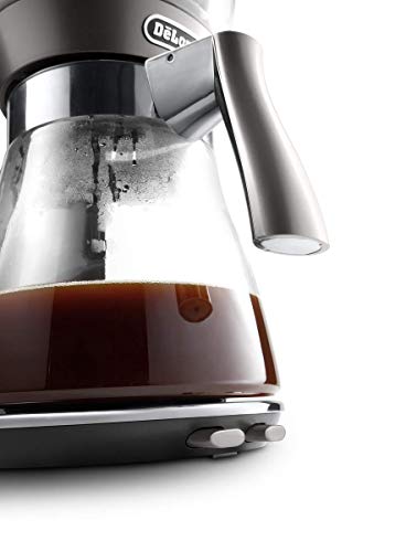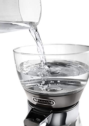 Mit unserer Filterkaffeemaschine Clessidra ICM 17210 sind Sie zugegeben einen Knopfdruck vom perfekten Brühverfahren entfernt. Denn die Clessidra beherrscht gleich zwei Methoden: Bei der ECBC zertifizierten Brühtechnologie werden die Temperatur und die Brühzeit präzise eingehalten, somit ist das optimale Verhältnis zwischen Kaffee, Wasser, Temperatur und Brühzeit garantiert. In 4 – 6 Minuten wird eine Kanne mit zehn Tassen Kaffee bei 92 – 96°C gebrüht. Mit einem Kaffee-Wasser-Verhältnis von 7 g Kaffeepulver auf 125 ml Wasser wird so ein Filterkaffee mit ausgewogenem Aroma zubereitet. Im klassischen Schwallbrühverfahren, angelehnt an die klassische Kaffeezubereitung von Hand (Pour over) wird ein immer gleiches Intervall bei der Kaffeezubereitung gewährleistet wodurch das maximale Aroma aus dem Kaffeepulver extrahiert wird. Ein präziser Thermostat gewährleistet eine stets perfekte Wassertemperatur. Die Warmhalteplatte garantiert, dass der Kaffee auch lange heiß bleibt. Zudem ist die Kaffeemaschine leicht zu Reinigen dank abwaschbarer Glaskanne und dem abwaschbaren Filtereinsatz. De’Longhi – Better Everyday. Die Innovationen von De’Longhi, die herausragende Qualität und das unverwechselbare Design lassen Alltagsaufgaben zu einem besonderen Erlebnis werden. Wir entwickeln Produkte, die sich durch ihre Leistung und ihre Funktionalität, nur vor allem durch Freude am Benutzen auszeichnen. Unser Zweck ist es, mit all unseren Produkten, Techniken und Herangehensweisen etwas Besonderes zu bieten. Wir entwerfen funktionale Produkte mit eleganten, klaren Arrangieren, innovativen Farbkombinationen und aus hochwertigen Materialien, aufeinander abgestimmt an die individuellen Anforderungen in den Haushalten weltweit. Lieferumfang De’Longhi Clessidra ICM 17210 Filterkaffeemaschine, Silber