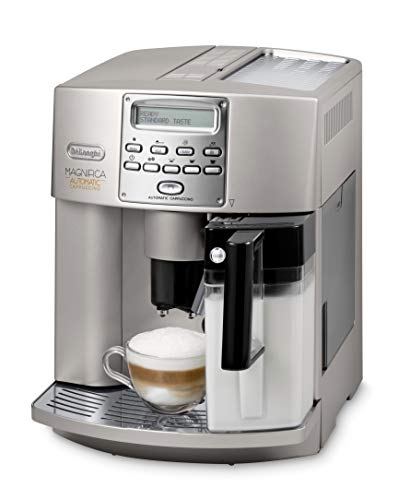 Kaffeevollautomat mit Digitaldisplay in elegantem Silber und kompakten Design, mit Bedienfeld und Direktwahltasten für 6 Getränke. Milchschaum auf Knopfdruck dank patentiertem LatteCrema System. Mit dem Varioregler lässt sich die Milchschaumkonsistenz eichen, flüssig heiß oder cremig, für ideale Milchkaffeespezialitäten wie Cappuccino oder Latte Macchiato. Die De’Longhi Kaffeevollautomaten vollenden die aktuellen Energiestandards und sind mit verschiedenen Energiesparfunktionen ausgestattet. Das Modell verfügt über eine automatische Deaktivierung, Stand-By-Diagramm und Netzschalter.