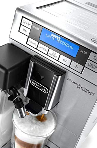 De’Longhi PrimaDonna XS ETAM 36. 365. MB Kaffeevollautomat (Digitaldisplay, integriertes Milchsystem, Lieblingsgetränke auf Knopfdruck, Edelstahlfront, 2-Tassen-Fotografie) silber/schwarz