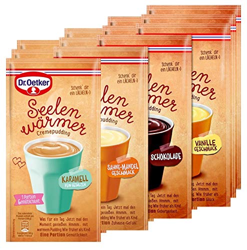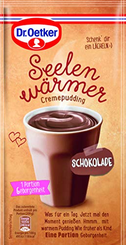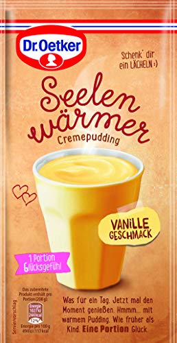 Dr. Oetker Seelenwärmer Cremepudding bietet warmen Puddinggenuss für spontane Verwöhnmomente und beschert das wohlige Gemütsbewegung von Glück und Geborgenheit. Die reichhaltige Rezeptur sorgt für einen cremig-vollmundigen Pudding-Geschmack – am besten noch warm genießen.