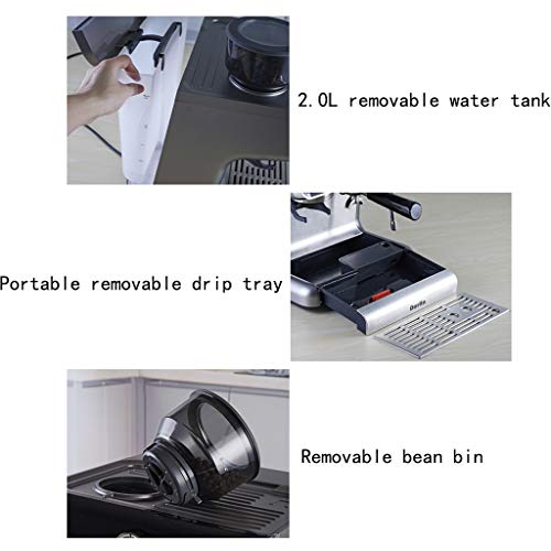 □ Merkmale: Professionelles Dampfschaumsystem, Schleifbohne Warnung / Entkalkung Erinnerung / Autoschlaf, Dual PID Intelligente Temperatursteuerung, 2.0L Wechselwassertank, tragbarer Abnehmbarer Tropfablage, abnehmbarer Bohnenbehälter