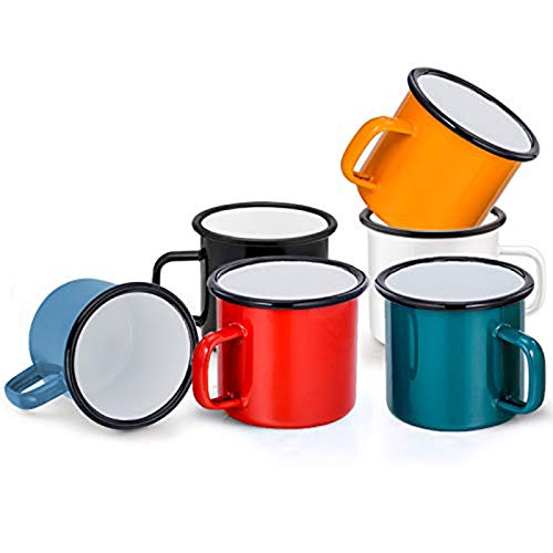 HaWare Emaille Teetasse Kaffeetasse 6er-Set, hergestellt allesamt hochwertigem Email mit ungiftiger Keramikbeschichtung, gesund, rostfrei und langlebig für den täglichen Gebrauch. Die glatte Oberfläche und abzüglich Getränkereste machen diese Tassen leicht zu reinigen. 6 verschiedene Retro-und attraktive Farben (Breit, Grün, Gelb, Rot, Schwarz, Weiß), Qualifiziert für Joghurt, Müsli, Latte, Macchiato, Hafer, heiße Schokolade, Likör, Espresso, Milch usw., Kann Alias als Obstbecher, Popcornbecher oder Bonbonbecher für Kinder verwendet werden. Eine gute Annäherung für Wohnwagen, Konferenzen, Sommercamps, Schlafsäle, Bankette, Restaurants oder allesamt Festivals. Idealer Ersatz für Glas-, Plastik- oder Bambus-Kaffeetasse! Für eine längere Lebensdauer empfehlen wir, die Tassen von Hand zu ausspülen.