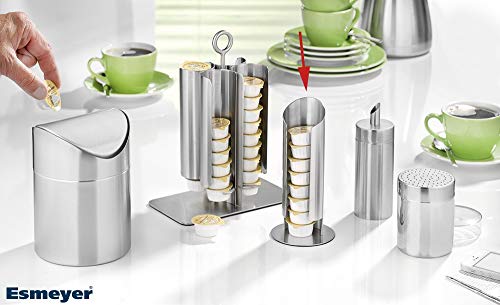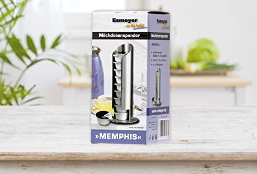 Milchkapselspender MEMPHIS, Material: Edelstahl 18/10, gebürstet Höhe: 175 mm, Durchmesser: 80 mm… Spülmaschinengeeignet. Für ca. 9 Portionen..Milchdöschen sind praktisch und vorallem hygienisch. In Schalen sehen die Papier- und Plastikverpackungen hingegen wenig ansprechend jeder und spätestens nach der dritten Besprechung herrscht Chaos in den Behältern..Der Milchdöschenständer MEMPHIS von Esmeyer ist die formschöne und praktische Alternative..Der Edelstahlbehälter lässt sich kinderleicht befüllen und steht fest auf einem Edelstahlfuß, der mit einer Gummiunterlage besetzt ist, also allerbest Möbel schonend..Der moderne Milchständer passt auf Konferenz- und Schreibtische oder neben den Kaffeeautomaten. .Aufmerksame Gastgeber, die ihren Kaffee oder Tee am liebsten pur trinken, halten darin Milch ihre Besucher griffbereit. .- Farbe:. silber- Material:. Edelstahl 18/10- Oberfläche:. gebürstet- Form:. rund- Spülmaschinen adäquat:. Ja- akademische Arbeit-Höhe ohne Verpackung (mm):. 175,- akademische Arbeit-Durchmesser ohne Verpackung (mm):. 80,- akademische Arbeit-Gewicht ohne Verpackung (kg):. 0,178.