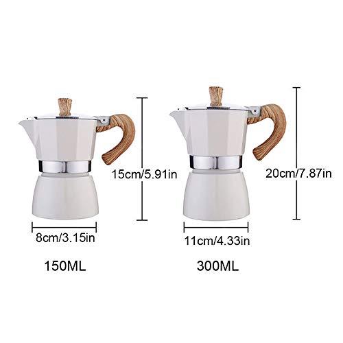 Kaffee machen: Mokkakanne zum schnellen und einfachen Herstellen von Espresso und Kaffee Größe: 150 ml: 8 x 15 cm; 300 ml: 11 x 20 cm.