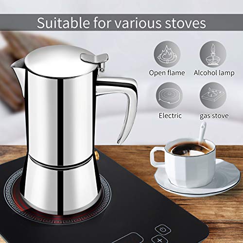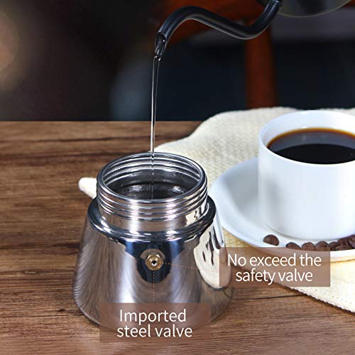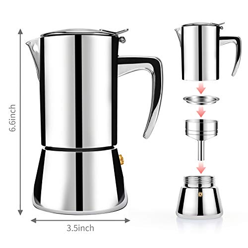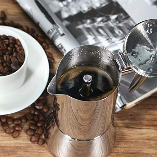 Material: 304 Edelstahl-Körper, 403 Edelstahl-Boden; Fassungsvermögen: 200 ml (4 Tassen).