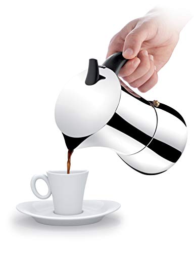 Eleganter Espressokocher sondern 2 Tassen jeder erstklassigen rostfreien Edelstahl, via ergonomisch geformten Griffen jeder hitzebeständigem Kunststoff