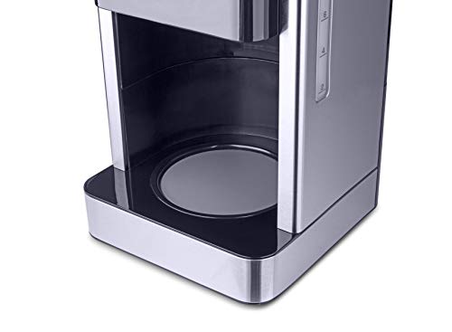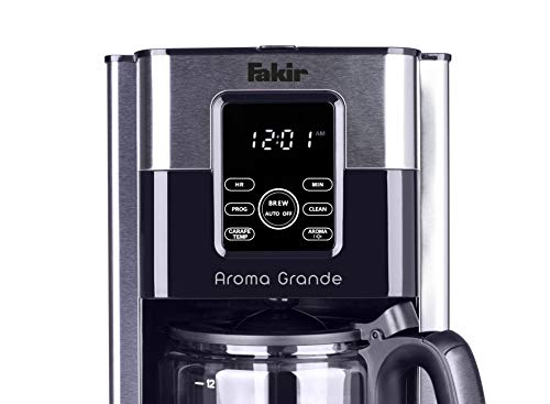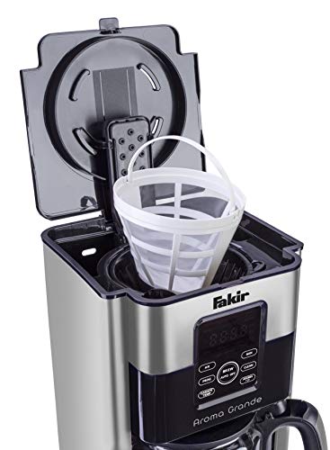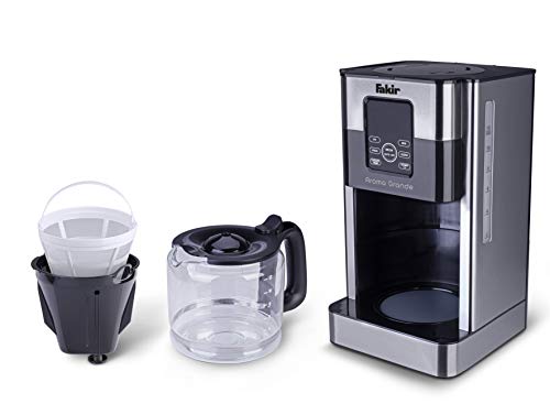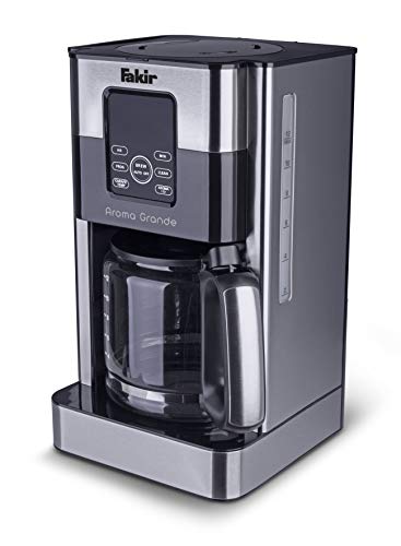 Fakir Aroma Grande Kaffeemaschine – langanhaltender Kaffeegenuss für jedermann Egal, ob die Familie zu Besuch kommt oder Sie ihre morgendliche Routine starten – der Wunsch nach einem absolut guten Kaffee kommt meist immer auf. In diesem Schrott lässt Sie die Aroma Grande Kaffeemaschine von Fakir nie im Stich. Die Kaffeemaschine zeichnet sich durch ihr modernes Design aus hochwertigem Edelstahl aus und ist zudem sehr kompakt. Die hochwertige Glaskanne und der integrierte Wassertank mit einem Fassungsvermögen von 1,8 l ermöglicht Ihnen gleichzeitig bis zu 12 Tassen wohlduftenden Kaffee aufzubrühen. Die Filterkaffeemaschine eignet sich hervorragend für den Heimgebrauch, wohl auch für die Kaffeeküche Ihres Unternehmens. Sie haben vergessen, Ihre Kaffeemaschine auszuschalten? Das ist zum Glück dank der Auto-Abschaltfunktion der Filterkaffeemaschine kein Problem. Sie schaltet sich nach 40 Minuten automatisch ab. Zudem können Sie dank der praktischen Warmhalteplatte Ihren frisch aufgebrühten Filterkaffee bis zu 4 Stunden nach dem Brühvorgang in der optimalen Trinktemperatur genießen. Mithilfe des smarten Touch-Displays mit LED-Hintergrundbeleuchtung können Sie Funktionen, wie die Timer-Positiv zum einen abteilen und zum anderen ein- und abdrehen. Jeden Morgen von einem frisch aufgebrühten Kaffee geweckt werden – wer möchte das nicht?