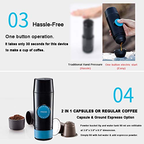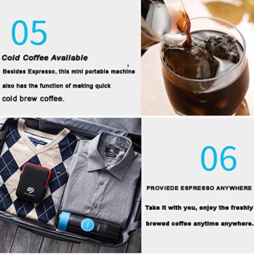 ★ ELEKTRISCHE AUTOMATISCHE AUSFÜHRUNG: Diese tragbare Espressomaschine ist eine elektrische Espressomaschine für die automatische Handextraktion von Maschinen zu Hause beim Camping im Freien oder auf Reisen.Es verfügt über ein USB-Stromkabel zur bequemen Verwendung, da es einfach angeschlossen werden kann.