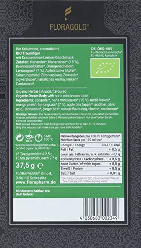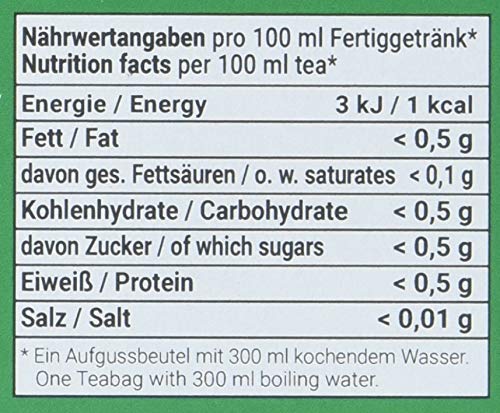 Koriander*, Nanaminze*(15%), Brennesselblätter*, Orangenschalen*, Lemongras*(7%), Apfelstücke (Apfel*, Säuerungsmittel: Zitronesäure), Zimtrinde*, Ingwerstücke*, natürliches Aroma, Nelken*, Cardamom*[* aus kontrolliert biologischem Anbau / certified organic by IMO]