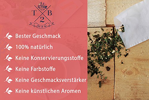 Dieser Frauentee von Tea2Be ist bis über beide Ohren frei von Zusatzstoffen weiterhin Süßungsmitteln.