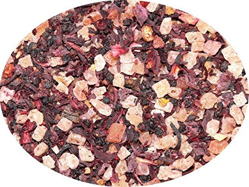 Zutaten: kandierte Ananasstücke (Hawaiananas, Zucker), kandierte Papayastücke (Papaya, Zucker), Hibiskusblüten, Holunderbeeren, Rote Beetestücke, natürliches Aroma, Erdbeerstücke (2%), Guavestücke (2%), Vanillestücke