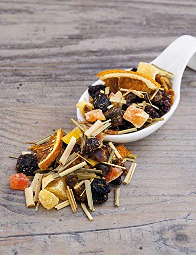 🍵 ZUTATEN: Dattel, Korinthen, Orangenecken, Ananas, Mango, Papaya, Zitronengras.