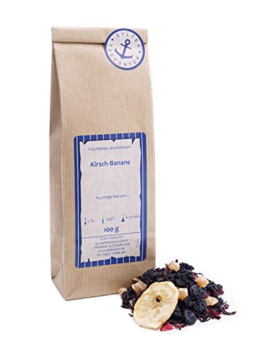 Fruchtig-zarte, kirsch-bananenfruchtige, rötliche Tasse. Korinthen (Korinthen, Trennmittel: pfl. Öl), Hibiskusblüten, schwarze Johannisbeeren, Ananasstücke (Hawaiananas, Zucker, Säuerungsmittel: Zitronensäure), Bananenchips (Bananen, Kokosnussöl, natürliches Würzessenz) ansonsten Würzessenz.