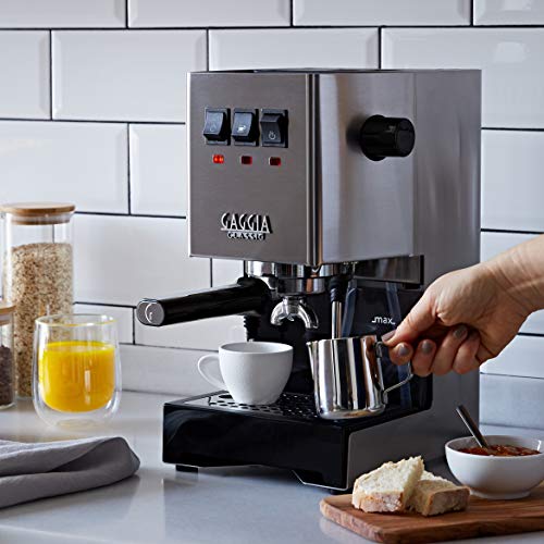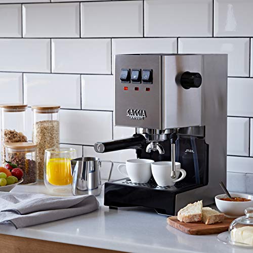 Die Gaggia New Classic Veröffentlichung mit professionellem verchromten Messing Siebträger und Edelstahl Dampflanze. Espresso zubereiten wie der Barist – zu Hause.