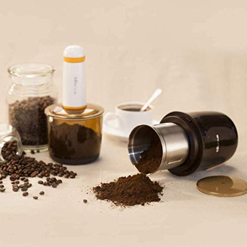 Mühle mit großer Kapazität Trotz ihrer kompakten Größe hat diese Mühle mit einer Mahlkapazität von 60 g bis zu 12 Tassen Kaffee, was für Ihre Familie und Freunde ausreicht, um sie zu teilen.