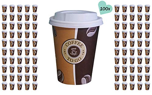 100 Pappbecher Coffee to go 0,3 L Becher über 100 Deckel