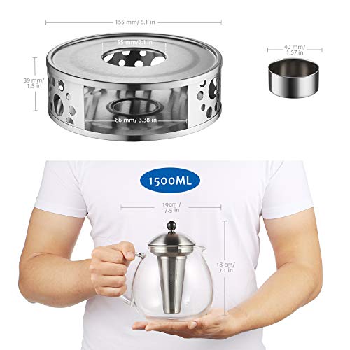 Teekanne Kapazität 1500ml (Φ19x18cm); Stövchen Innendurchmesser: 145mm; Durchmesser: 155mm; Höhe: 50mm. Passend für Teekannen mit Durchmessern von 60 – 145mm.