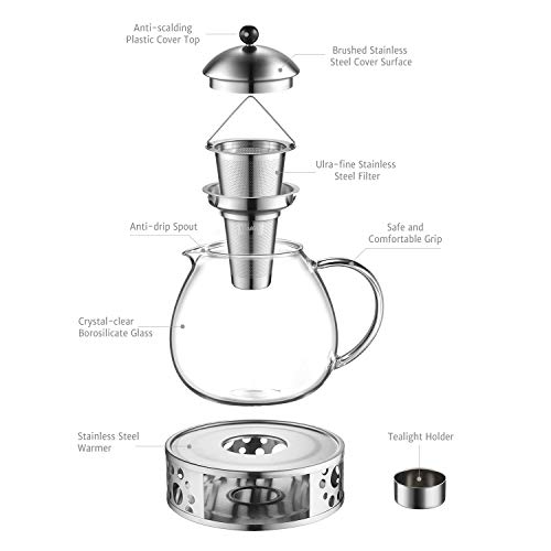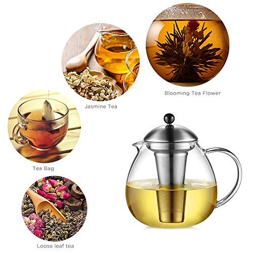 Hochwertige Teekanne: Der Knopf am Deckel besteht aus Kunststoff, der Verbrühungen beim Abklingen des Deckels verhindert. Deckel und Sieb bestehen aus Edelstahldeckel 18/10, der dafür sorgt, dass kein Rost entsteht. Gesundes glasklarem Borosilikatglas hält Temperaturschwankungen von abzüglich 30 ° C bis plus 150 ° C stand. Es bleibt intakt, auch wenn Sie kochendes Wasser in einen gefrorenen Krug gießen. So ist die Teekanne gesund und langlebig genug, um verwendet zu werden.