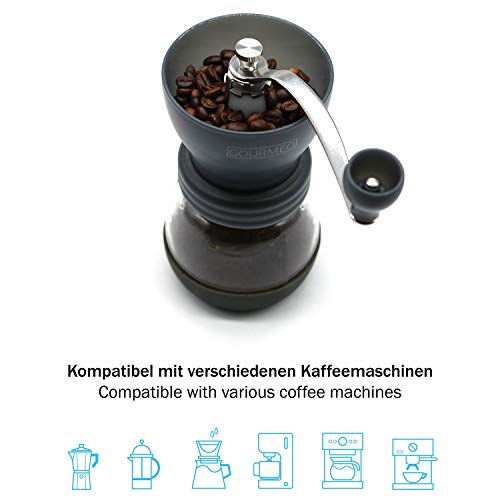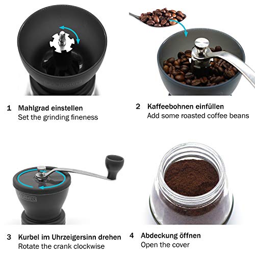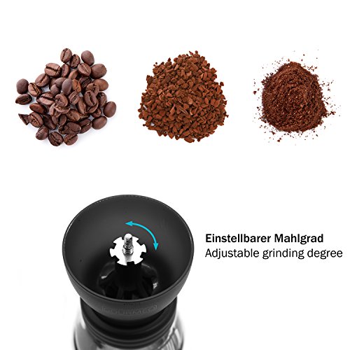 – Für bis zu vier Tassen: Mit der GOURMEO Handkaffeemühle kann Kaffee für bis zu vier Tassen jählings gemahlen werden