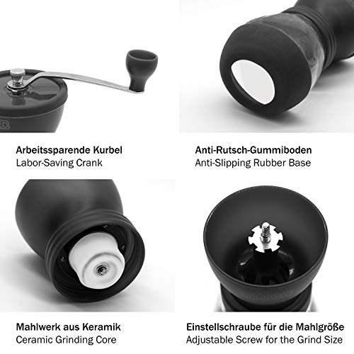 ✯✯ KORROSIONSBESTÄNDIG ✯✯ Dank des Kegelmahlwerks jeglicher Keramik ist die GOURMEO Handkaffeemühle korrosionsbeständig.