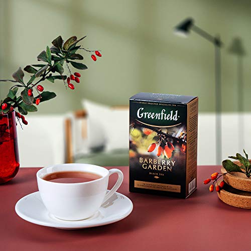 Greenfield Barberry Garden schwarz langes Blatt mit Berberitze wird Feinschmecker bezaubern, die interessante Kombinationen von schwarzem Tee mit Beeren und Kräutern bevorzugen. Die Aromen des indischen Tees, die geschmackvoll im Greenfield. Barberry Garden mit herrlichen süß-sauren Noten von Berberitzen und raffinierten Hibiskusnoten kombiniert werden, umsorgen ein echtes Vergnügen an makelloser Zartheit und duftendem Aroma. Abholen Sie sich den ganzen Tag Energie mit einer Tasse unseres wunderbaren Tees! Greenfield bietet großartige Aromen klassischer schwarzer und grüner Tees sowie exquisite Teekompositionen, die Teeblätter mit Früchten, Beeren, Blütenblättern und aromatischen Kräutern verallgemeinern. Jede Sorte ist eine kleine tägliche Entdeckung, die einen die endlose Vielzahl des Tees bewundern lässt. Fühlen Sie allesamt wohltuenden Eigenschaften und genießen Sie einen Moment der Entspannung und des Vergnügens!