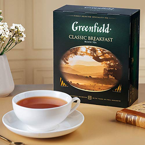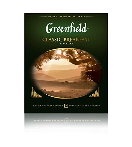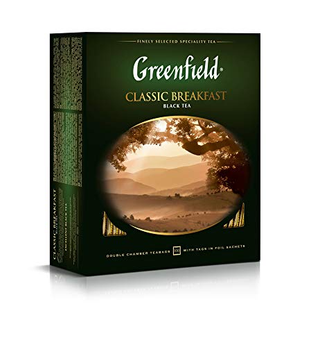 GREENFIELD CLASSIC BREAKFAST | Originaler Frühstückstee | Der feinste schwarze Tee | Schwarztee 100 teebeutel | Hochwertiger | Black Tea | 100 Tea Bags | Gluten-frei | Kosher | 200g