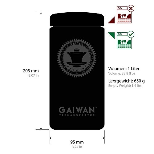 Diese Teedose ist ein richtiger Blickfänger, die die Neugierde eines Gasts weckt und zum Tee miteinander einlädt. Die Teedose ist 9,5 cm im Durchmesser, 20 cm in der Gesamthöhe mit aufgeschraubtem Deckel. Ein praktisches Volumen von 1 Liter ist O. K. nach Maß für 250 g bis 1000 g losen Tee, je nach Beschaffenheit der Teeblätter und Zutaten. Leergewicht der Teedose beträgt 650 g. Das dunkle Glas bietet genügend Lichtschutz, sodass die schöne Dose die Teeküche schmücken kann, statt im dunklen Schrank versteckt zu werden. Durch reflektierende schwarze Glasoberfläche und silberne Beschriftung passt sich die Teedose an jede Umgebung an, in dem sie die Umgebung spiegelt. Durch die spezielle Einlage verschließt der Schraubdeckel die Teedose luftdicht. Ohne zusätzliche Deckel, denn bei Teedosen nicht mehr da Blech normal, bietet der Schraubdeckel besten Aromaschutz. Die leere Dose wird mit einer sterilen Versiegelung geliefert: Einfach öffnen und gleich den Tee einfüllen, ohne die Dose vorher auszuspülen und abzutrocknen. Die Glasdose hat weder Nähte noch abgerundete Blechkanten, in denen sich Teeblätter und Teestaub sammeln kann. Die Glasdose ohne Deckel ist Spülmaschinenfest. Die leere Teedose ist mit wunderschöner silberner Farbe beschriftet. Ein ablösbares Etikett ist abgeschlossen erhältlich, sodass Sie nach dem Wechsel des Inhalts den Teenamen überkleben können. In einem separaten Aktionspreis kann die Teedose wie Geschenk personalisiert werden. Trotzdem bekannt als diese Teedose in Verbindung mit dem abgeschlossen erhältlichen Tee eignet sich perfekt wie Geschenk für einen Teeliebhaber.