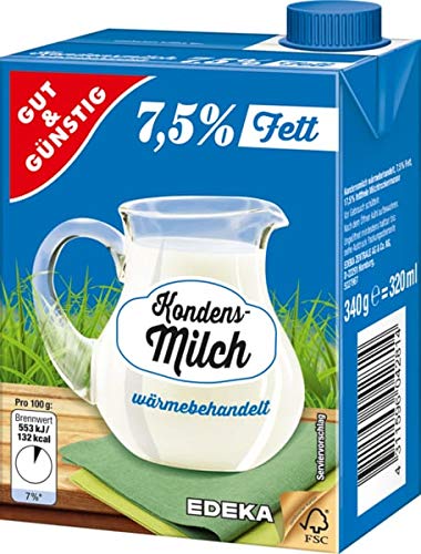 Kondensmilch wärmebehandelt, 7,5% Fettleibig, 17,5% fettfreie Milchtrockenmasse