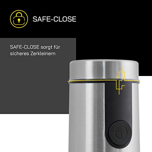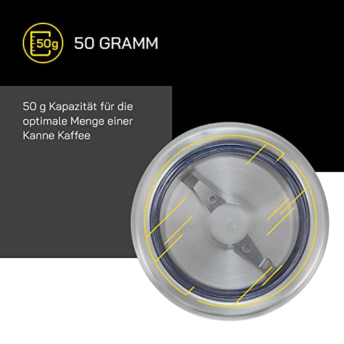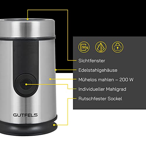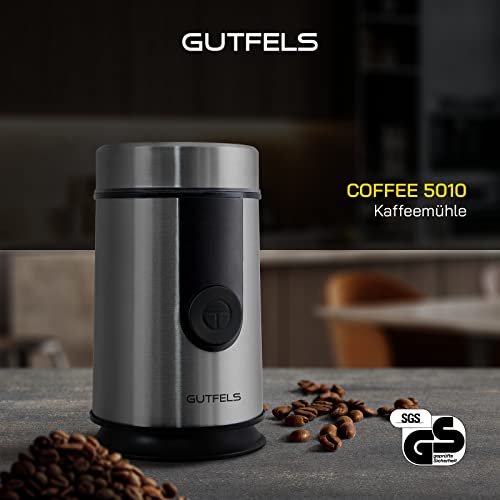 GUTFELS Kaffeemühle COFFEE 5010 | 50 g Kapazität | Edelstahl Gehäuse und Klingen | Kabelaufwicklung | Sichtfenster im…