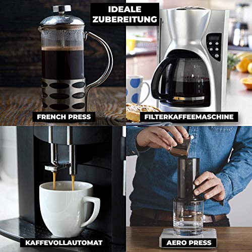 ✅DEIN PERFEKTER FILTER COFFEE: Im Gegensatz zum Espresso hat der Filterkaffee jede Menge mehr natürliche Fruchtaromen. Mit einer French-Press, einer Filterkaffeemaschine oder einem Kaffeevollautomaten holst du das Maximum die Gesamtheit der Bohne.