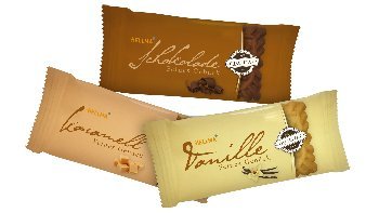 Ein edles Gebäck-Trio, Kekse geteilt wertig abgepackt. Portionsweise hygienisch und optisch ein Hinkucker an der Tasse und wenn die kleine Wachsamkeit beim nächsten Besuch doch ähnlich, geschmacklich nunmehr jedoch ganz anders ist, erfüllt sie mehr als ihren Schluss.