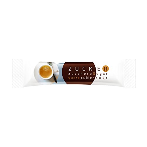 Hellma Mini Zucker-Sticks 200 Stk. je 2,5 g â kurz – 500 g Vorrats-Box – Zuckertütchen einzeln, für Espresso