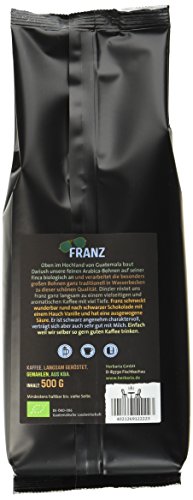 Franz ist der vielseitige, ausgewogene am Lebensabend. Große 100% Arabica Bohnen Die Gesamtheit dem Hochland von Guatemala, schmeckt schön rund nach schwarzer Schokolade und einem Spur Vanille.