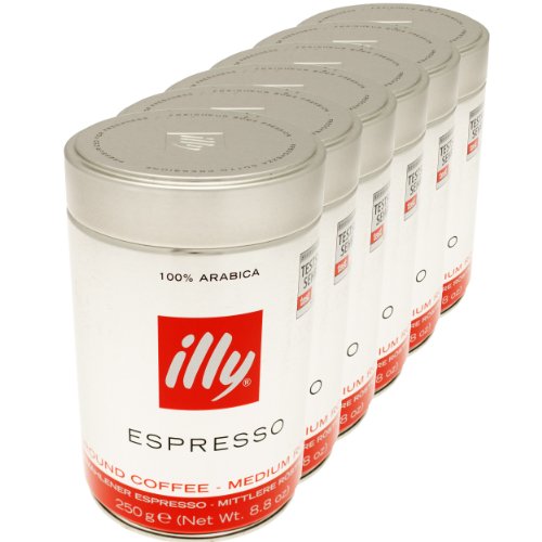 illy Espresso Classico Normale Röstung – 6 x 250g Kaffee gemahlen, 100% Arabica (Neues Design)