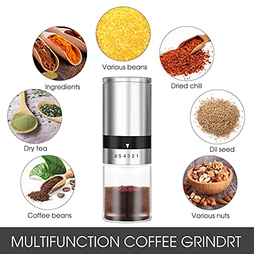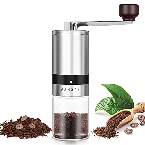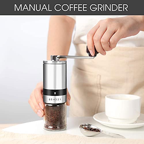 Kompakt & Akzeptierbar: Kleine und leichte Hand-Kaffeemühle, Gewich: 425g, Dimensionen: 5,5 x 5,5 x 19,5 cm, einfach zu transportieren. Keine Batterien, kein Strom oder kein lange Plastikkabel brauchen. Nicht ungeachtet für Zuhause, Büro Brauchbar, sondern aka eine fantastische Annäherung für Dienstreise, Reisen, Urlaub Camping usw.