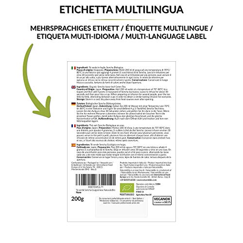 NaturaleBio Japanischer Sencha Tee â 200 g Bio Grüntee â 100% reiner und natürlicher grüner Sencha Tee – Lose in Blättern der ersten Ernte â Bioprodukt angebaut in Japan