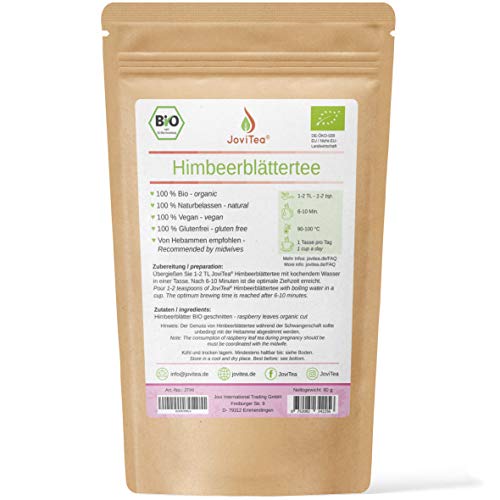 JoviTea® Himbeerblättertee BIO- Kräutertee -auch während der Geburtsvorbereitung -Schwangerschaftstee -100% natürlich und ohne Zusatz von Zucker. Aus Biologischem Anbau. Himbeerblätter 80g (1er Pack)