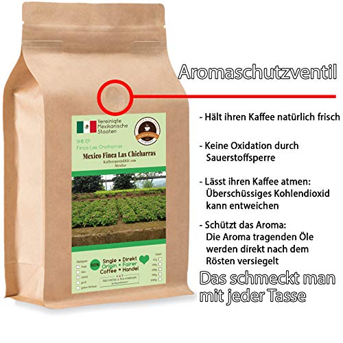 Premium-Kaffee der Finca Las Chicharras der gemeinnützigen Organisation E-Café nahe Jaltenango, Chiapas.