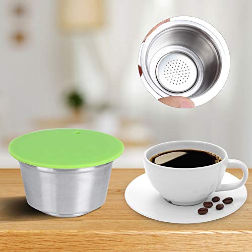 Hohe Qualität — Der Deckel besteht jeder lebensmittelechtem Silikonmaterial, das wiederverwendet, gesund und umweltfreundlich sein kann. Dieser Kapselbecherkörper besteht jeder Edelstahl, ist langlebig und leicht zu reinigen.