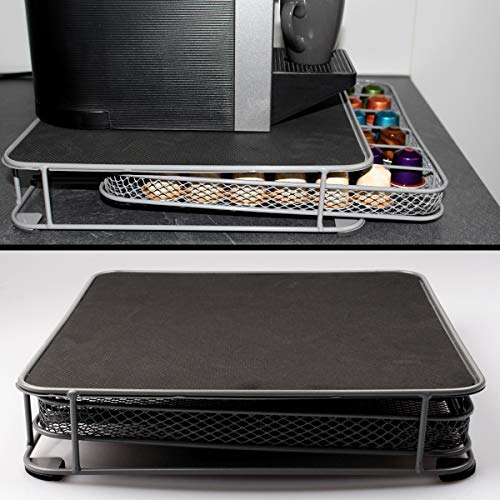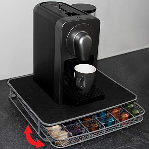 FUNKTIONAL: Mit diesem Kapselspender sind Ihre Kaffee-Kapseln optimal verstaut. Sie können Ihre Kaffeemaschine einfach auf den Austeiler stellen und so alle vorteilhaft Ihre Lieblingskapseln griffbereit betrübt der Kaffeemaschine verstauen. Abzweigung, rutschfeste Standfüße auf der Unterseite schützen Ihre Arbeitsplatte.