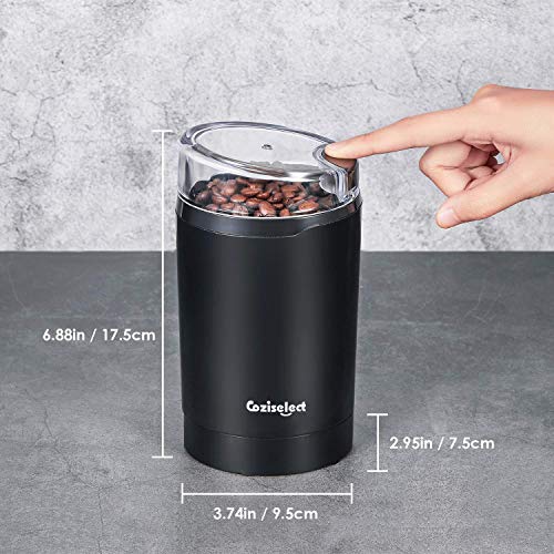 Kaffeemühle, Coziselect Elektrische Kaffeemühle Kaffeebohnen Nüsse Gewürze Getreide Mühle mit Edelstahl Schlagmesser 75g…