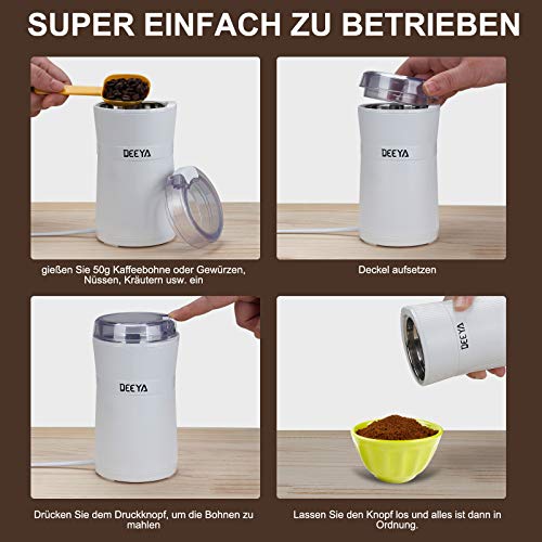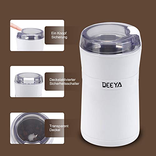 Kaffeemühle DEEYA Tragbare Elektrische Gewürz und Kaffee Mühle Leise 200W Mahlgrad Getreidemühle, Gewürzmühle für…
