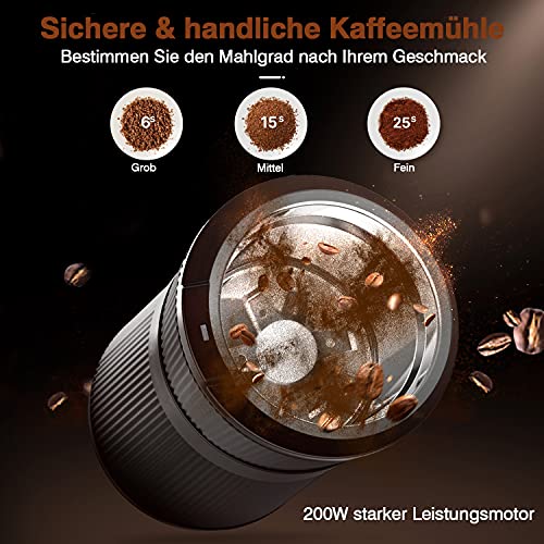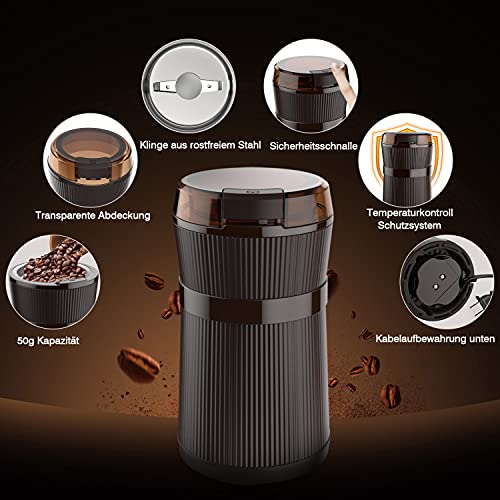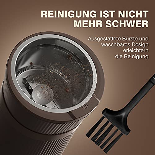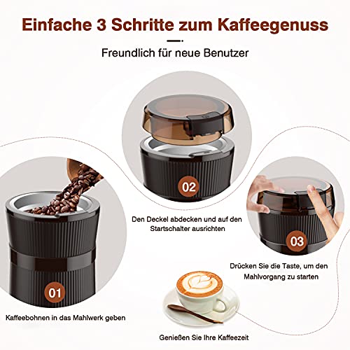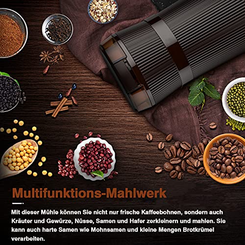 Kaffeemühle Elektrische, 200W Tragbare Waschbare Elektrische Kaffeebohnen und Gewürzmühle mit Edelstahlklingen und…