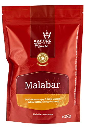 Kaffeerösterei Kirmse Kaffee Malabar, Monsooned Malabar aus indien, Kaffee ganze Bohnen, Handverlesen, Fair gehandelt…