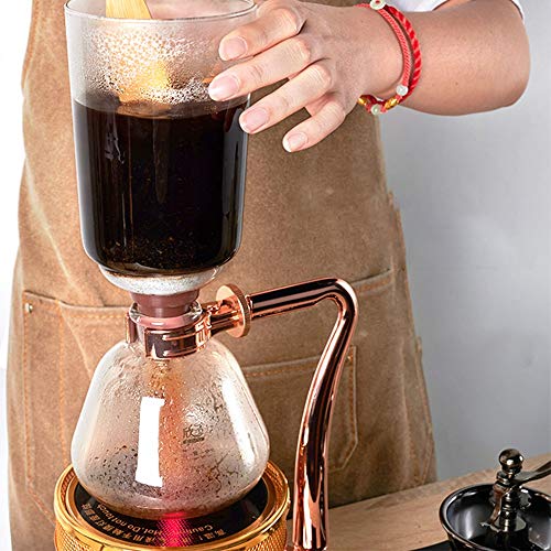 Die Wissenschaft und der komplexe Geschmack des Siphonbrühens beruhen auf dem Dampfdruck, der das Wasser dank das Siphonrohr nach oben drückt. Folglich saugen Vakuum und Schwerkraft den Kaffee dank den Boden. hat diesen Ausfluss vereinfacht, um eine Tasse Kaffee zu extrahieren, die die Gesamtheit unverwechselbaren Aromen Ihrer Lieblingsbohnen zeigt.