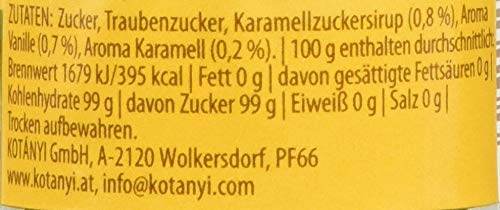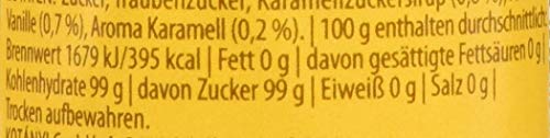Zutaten: Zucker, Traubenzucker, Karamellzuckersirup (0,8%), Aroma Vanille (0,7%), Aroma Karamell (0,2%).