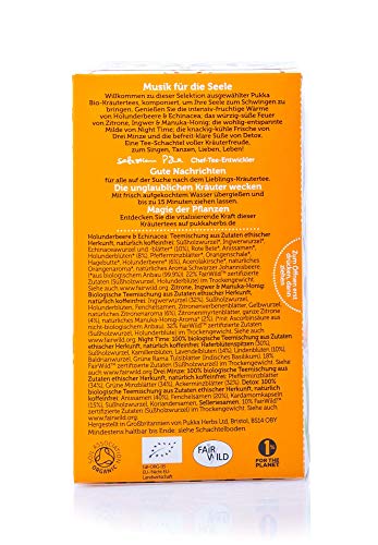 - Enthalten sind die Sorten Holunderbeere & Echinacea u. a. Zitrone, Ingwer & Manuka-Honig